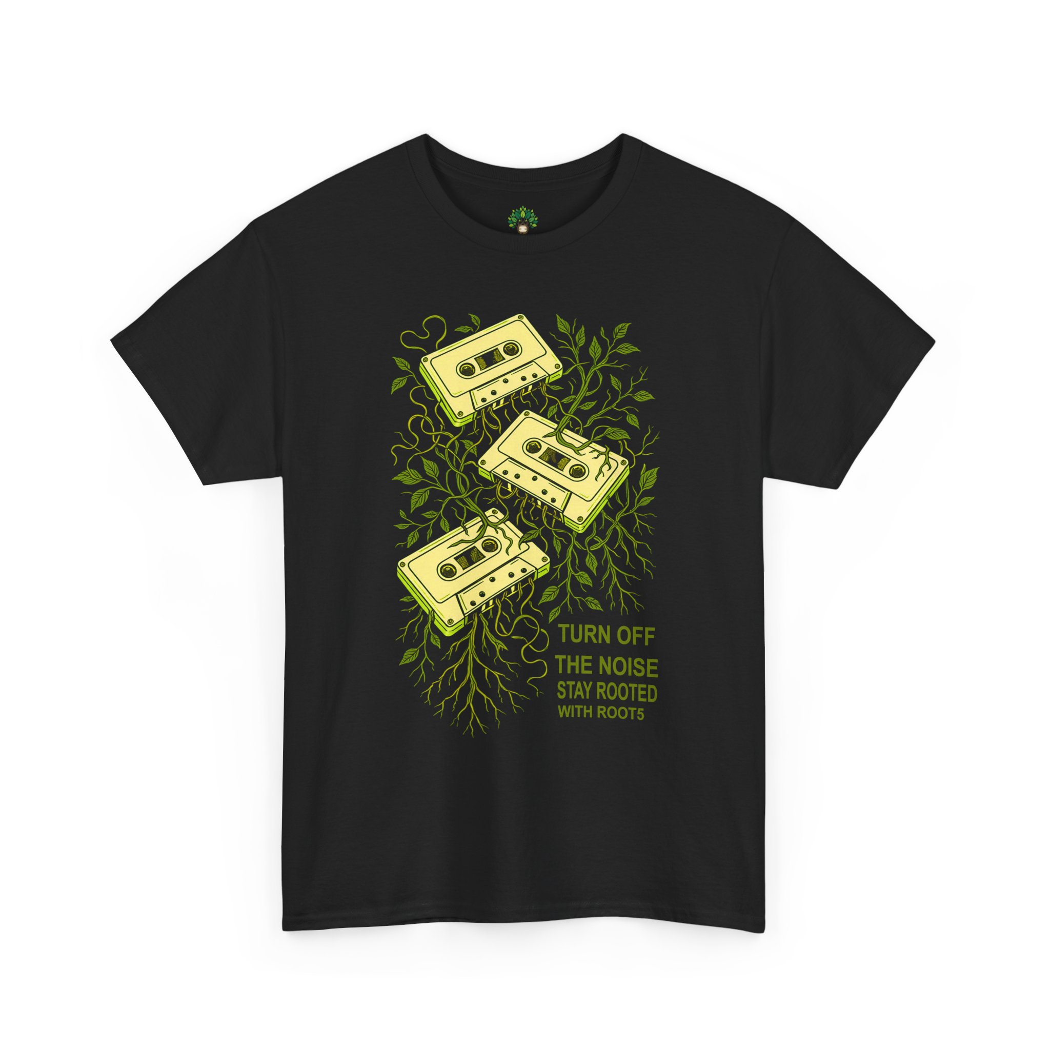 This tee brings laid-back, analog charm to anyone who loves vintage sounds and slow afternoons. A faded cassette tape motif and hand-lettered “Root5 Vibe” feel like a mixtape passed between friends — warm, familiar, a little rebellious. Wear it to backyard gatherings, record-store hunts, or late-night drives when the road and music are the point. The relaxed silhouette and soft, sturdy cotton let the design breathe and age beautifully; it moves with you while the print stays sharp. It’s for people who collect memories, not followers — for those who want clothing that whispers stories rather than shouts logos.