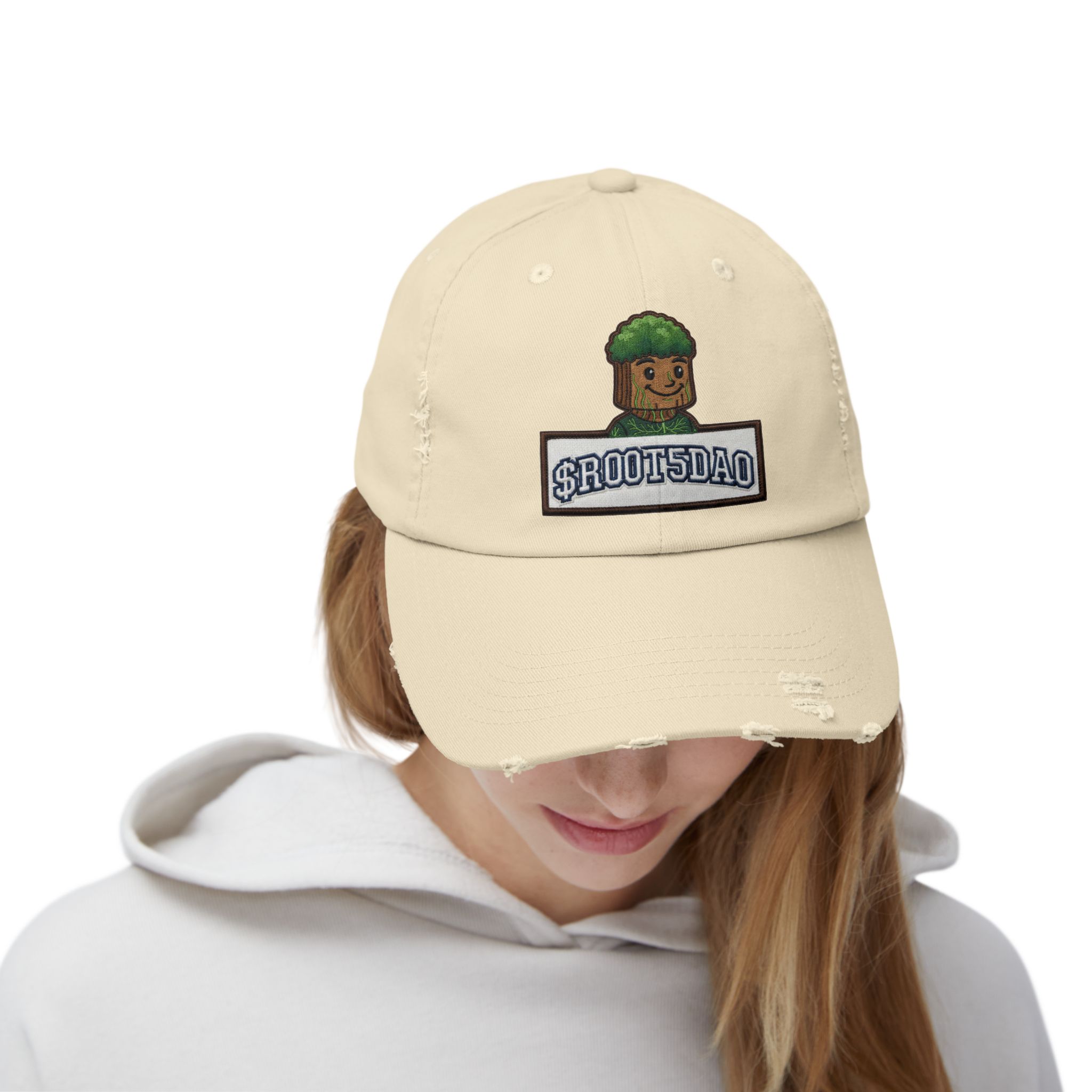 This well-worn cap settles onto your head like an old friend — soft, faded, and full of character. The ROOT5 DAO MAIN MAN ROOT Character design sits subtly on the crown, blending into the hat’s lived-in texture so it reads like a personal emblem rather than a loud logo. Wear it on slow mornings with a coffee, on runs into town, or when you need a low-key piece that carries a story. The distressed twill and low-profile shape make it effortless to pair with layered streetwear or a simple tee. Each cap’s unique distressing and color shifts mean every piece tells its own small history — familiar, comfortable, and quietly distinctive.